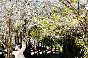 昆明入冬以来鲜花轮番上阵,冬樱未谢,蜡梅又开。作为黑龙潭公园赏梅季最先出场的蜡梅,有着能抵御严寒的厚实花瓣,形似金钟,大多数人都会被它独特的清香所吸引。在昆明暖阳和蓝天的映衬下,“苦寒”不复存在,一缕若隐若现的清香却引来无数爱梅之人举着手机或相机,或拍自己或拍花朵,享受赏梅季。