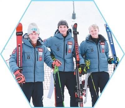 挪威运动员在河北崇礼万龙滑雪场合影。 人民网记者 李兆民摄